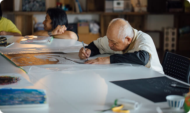 世界から注目されるやまなみ工房を訪れ、施設に通う人々に混じって一緒にすごす時間をつくりながら異彩を放つ環境を考える。多彩なアーティストが生まれるのか、その背景・理由についてワークショップを行う。